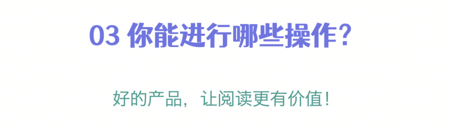 电子图书100%采用最流行的epub格式精致排版,可根据阅读环境和个人习惯设置字体大小、背景色、界面亮度等。阅读过程中,长按文字可以使用划线、批注、搜索、词典等功能,根据目录和书签快速进行阅读定位,提升阅读效率。同时,每有会意,便可随时书写阅读感想,让每一次灵感、每一份感动都留下记忆。