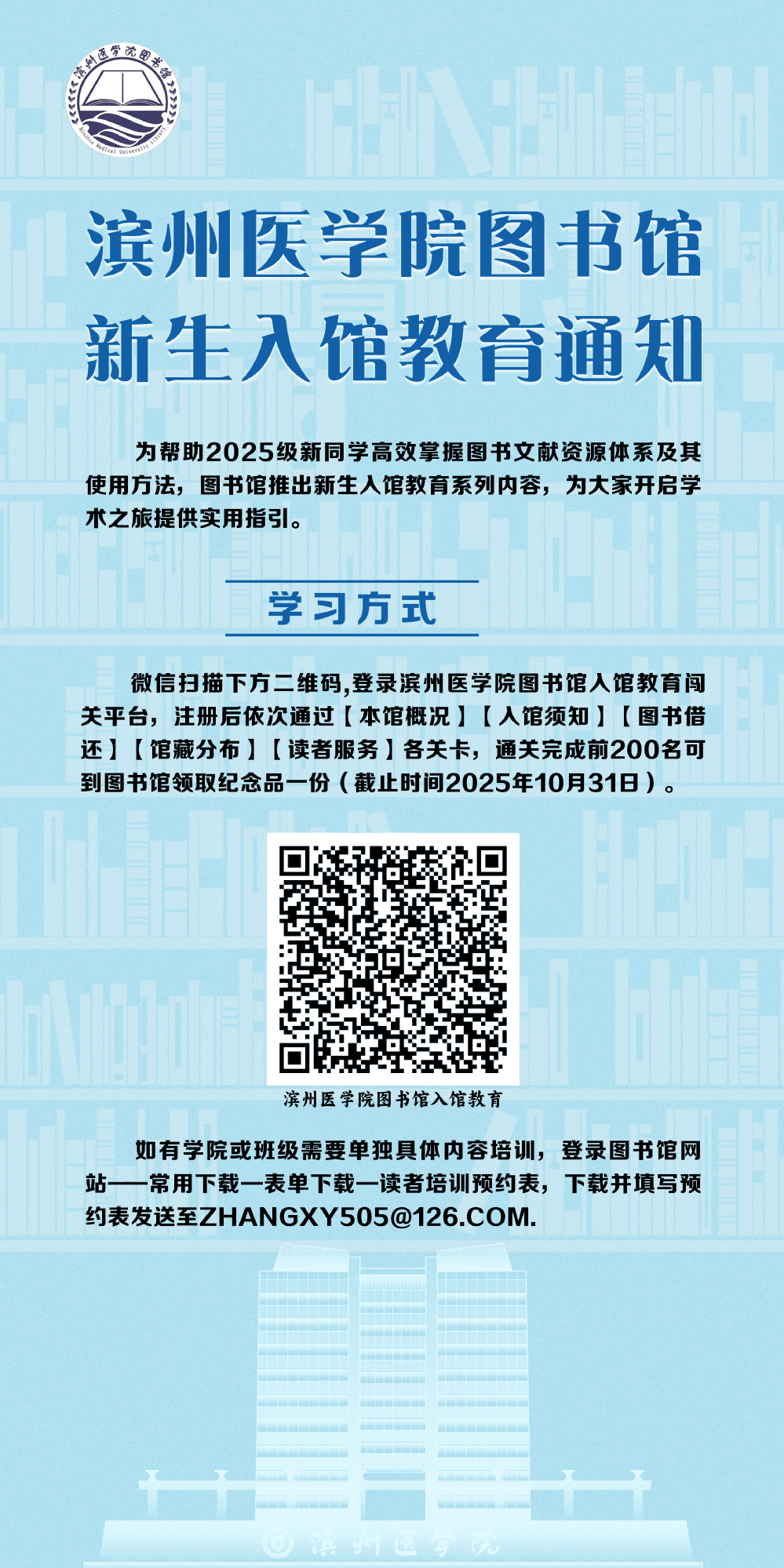 滨州医学院图书馆新生入馆教育通知